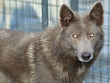 Solid blue wolfdog. Embarked at 62.1% gray wolf with Alaskan Malamute, German Shepherd, and Siberian Husky as his dog breeds. He is clear on embarks health portion and carries for liver. This big boy weighs in at around 100lbs and is super tall. He is a social boy with a goofy personality. Picture coming soon